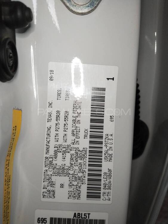 Chassis No 5TFAY5F11KX785603 |