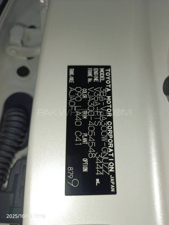 | Inspection Date 25 Oct 2025 | Chassis No VJA300-4054548 | Engine No V35A0108710 | Registration No Unregistered |