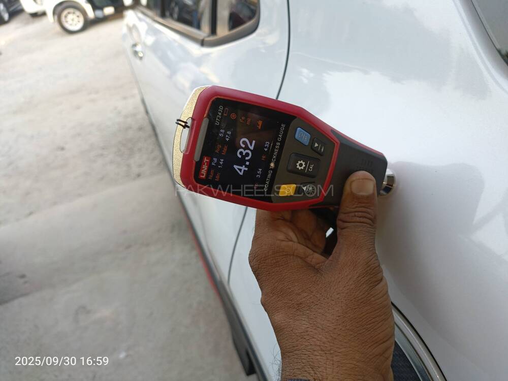 Inspector Comments: all doors ke bolt pay tool apply hay All doors pay black and red stickker lagay hoe hain all tyres pay creck hain boot floor and boot lock pillar cover hay ghari front nechay say cover hay seats pay plastic laga huwa hay roof and All pillar Black hain left and right pillar pay black pepper laga huwa hay dakoment sellar ke pass hain trunk hood ke bolt pay tool apply hay fuel cap pay stickker laga huwa hay .Report is updated after informing the customer by technician.