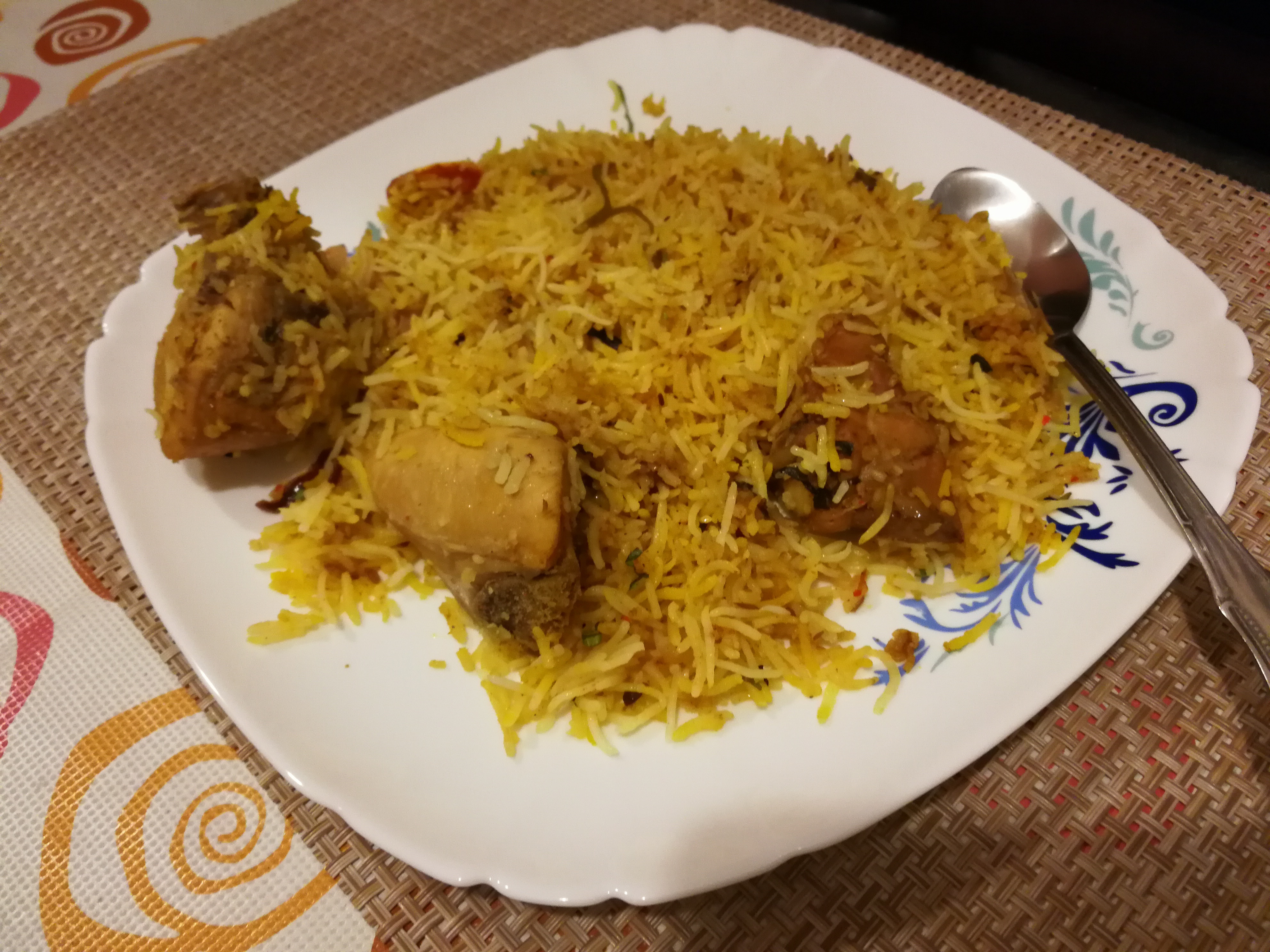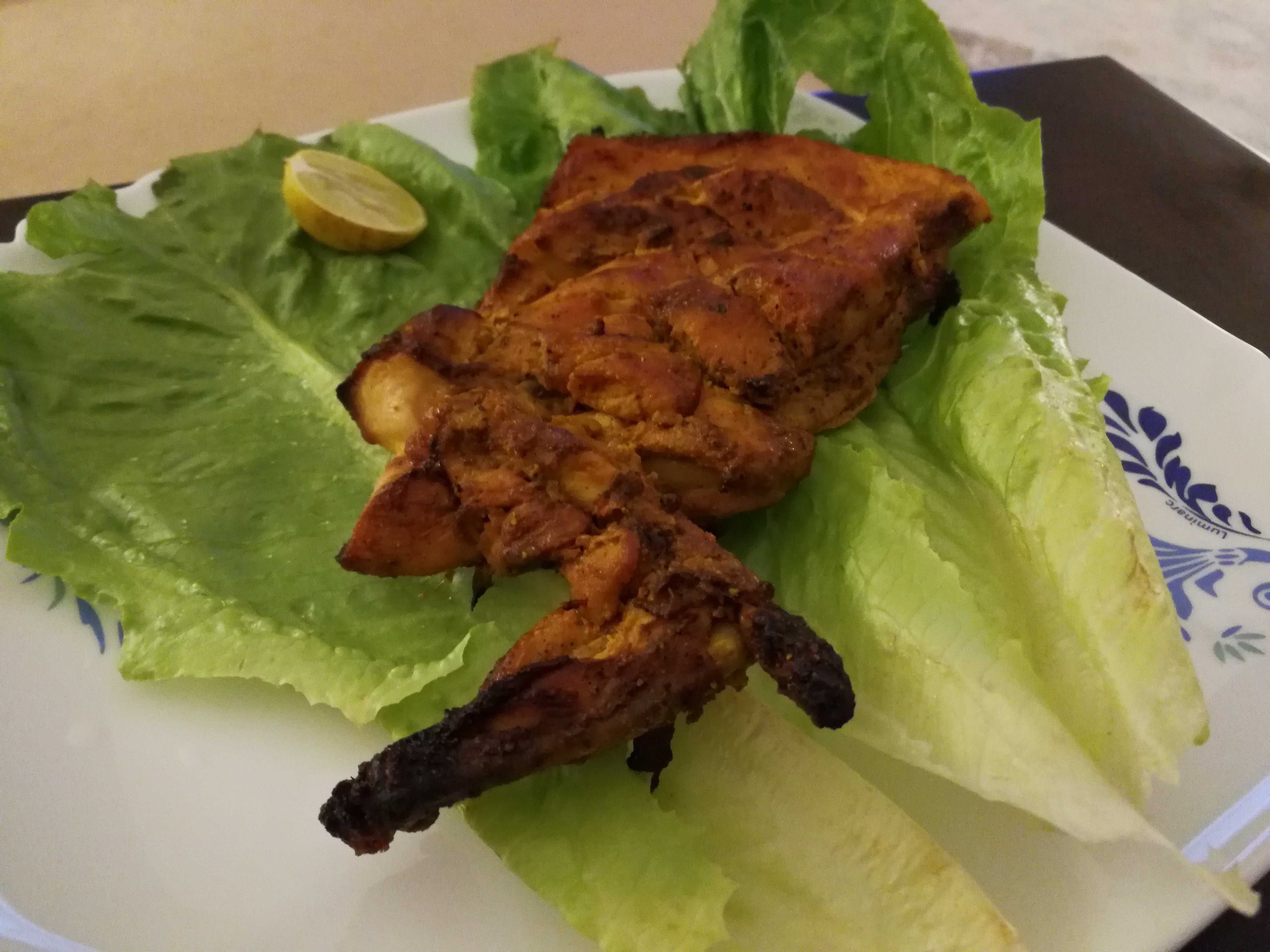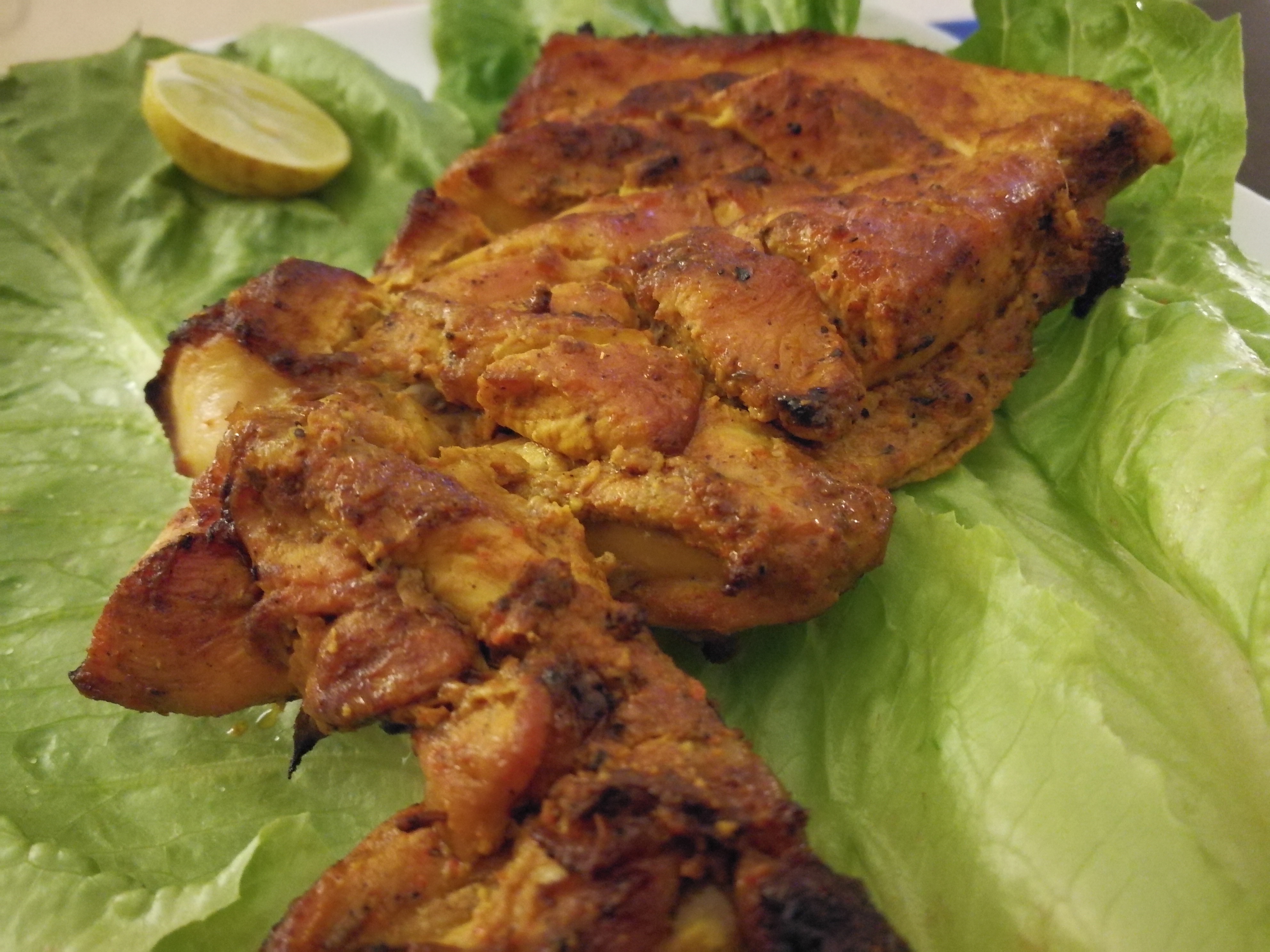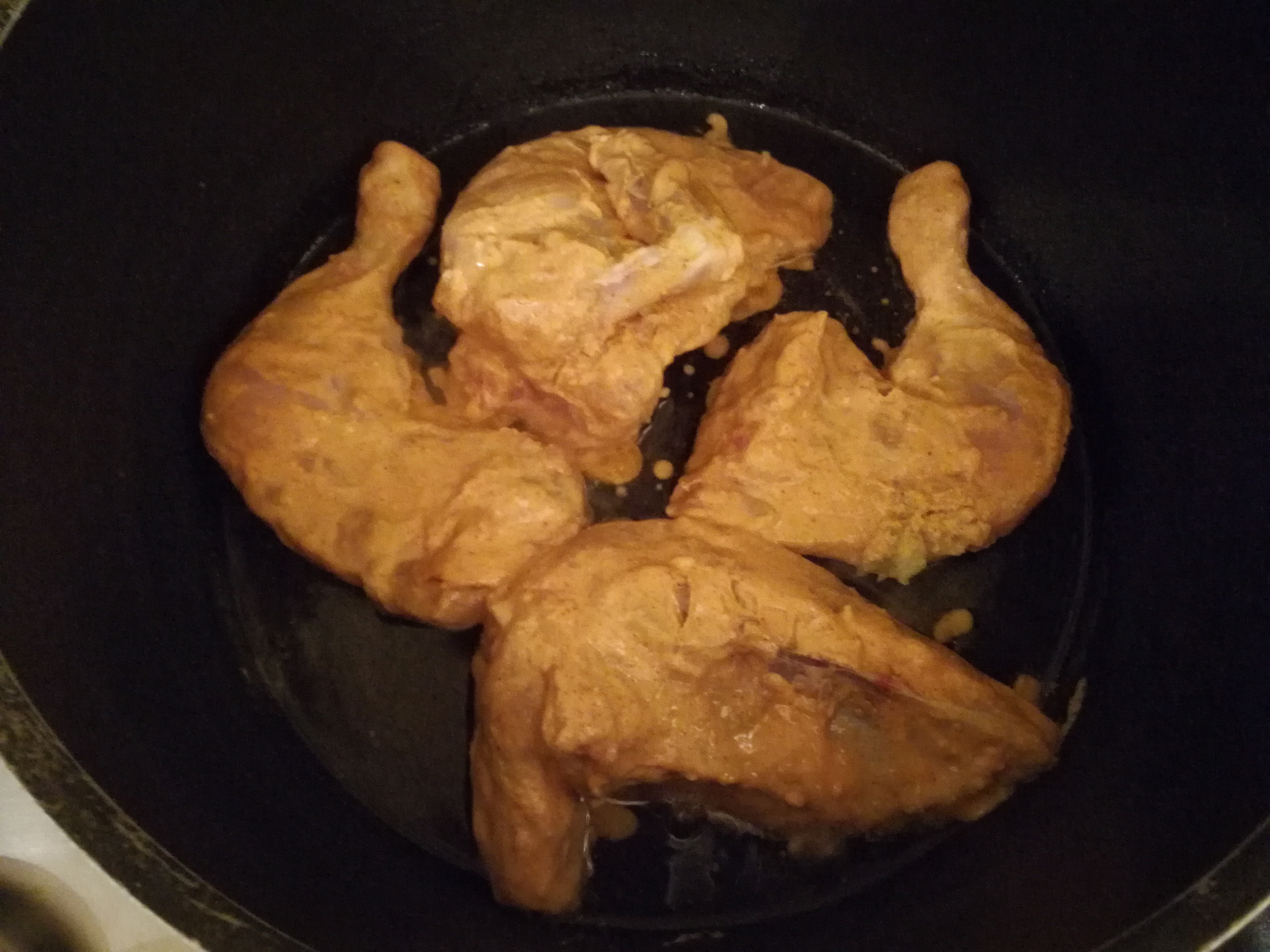 .As wife was outside, I decided to prepare Chicken Tikka at home.. I marinated Chicken pieces with Shan masala, yoghurt, lemon juice and some vinegar. After a few hours, I put the chicken pieces in vessel with little oil to cook..