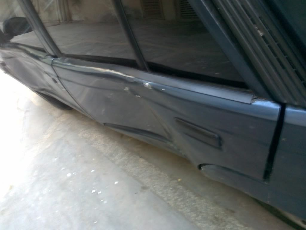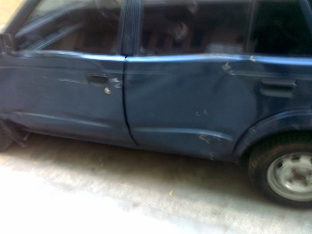was on my way to buy food while turning on the left side an over speeding out of control ricksha smashed my car while i was turning i had indicator running n that guy was either drunk or high or a very much newbie as we all know CNG ricksha guys dont know how to drive their wheels..my car went over a footpath but luckily just Left side doors are damaged