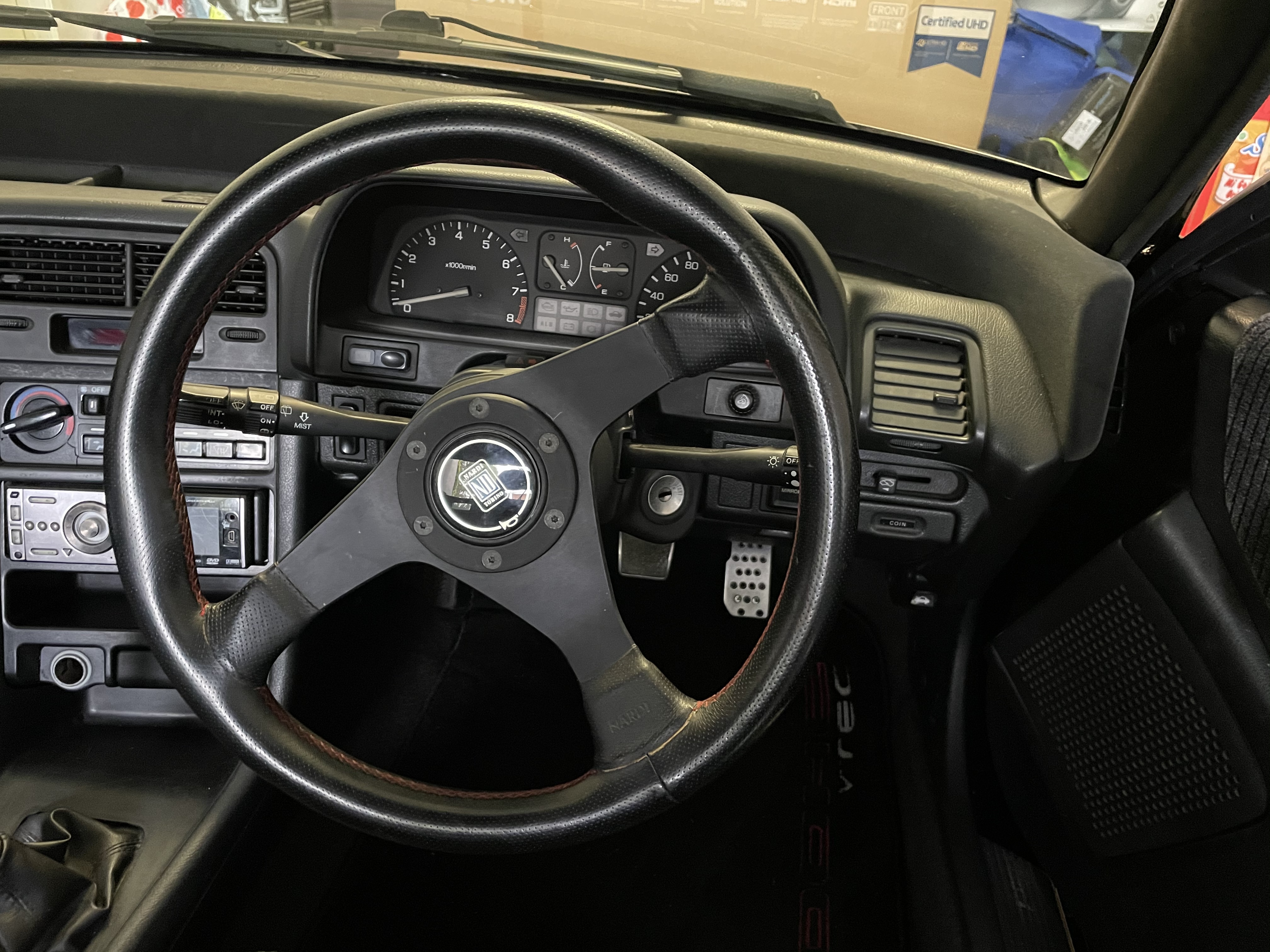 EF8 SiR original foggies, seats, door cards and gear knob. Also installed a Nardi leather steering wheel to replace the Momo, on which paint was flacking