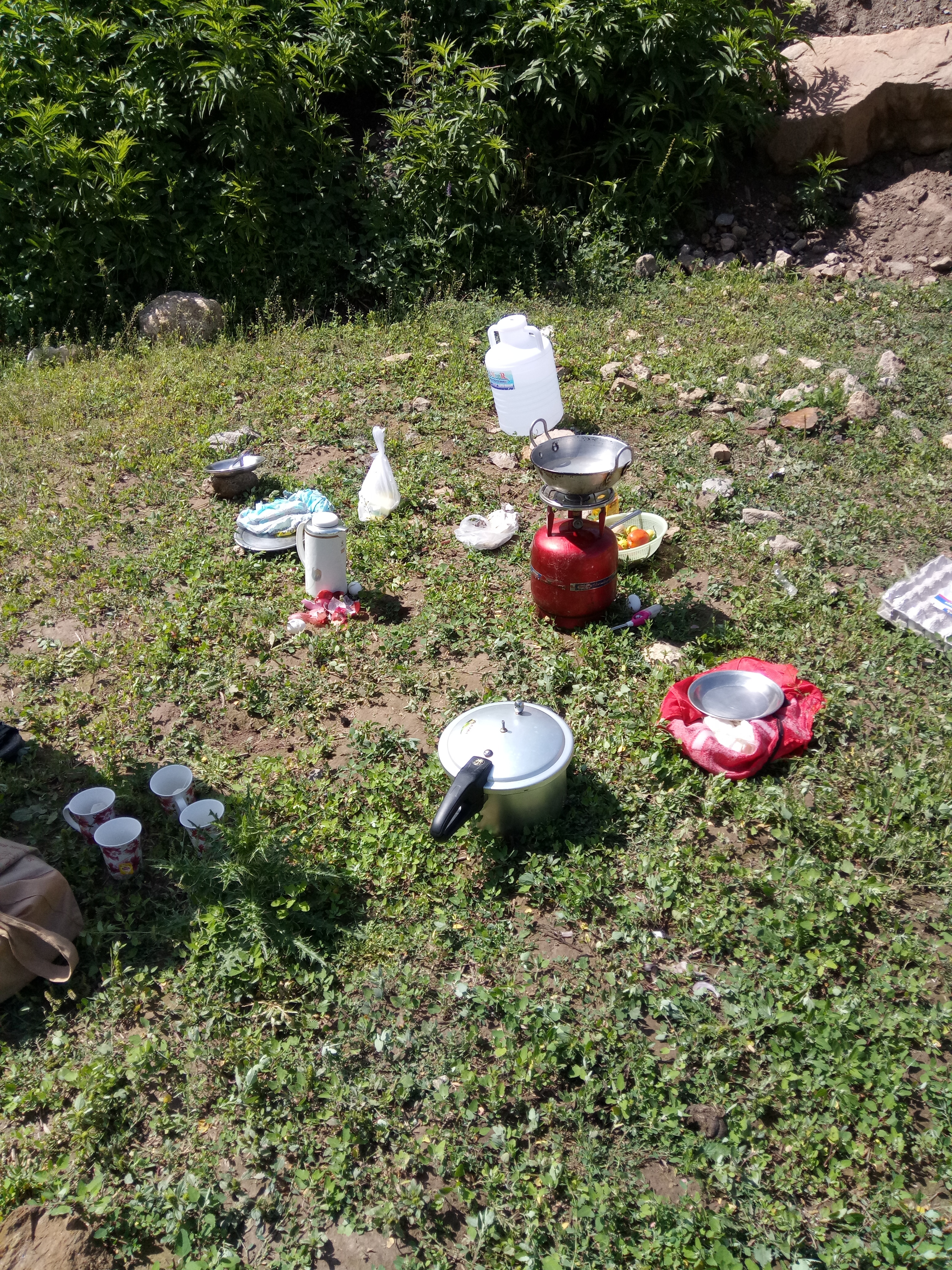 بٹہ کنڈی کی یہ آبادی بہت بڑی نہیں تھی۔ کچھ ہوٹل اور دوکانوں پر مشتمل تھی۔ صبح چائے اور چند بسکٹ کھانے کے بعد اب بھوک محسوس ہورہی تھی اور ویسے بھی وقت ناشتے کا تھا۔ اسلئے یاسر بھائی کو بازار میں بھیجا کہ کسی ہوٹل سے روٹیاں لے آئے تاکہ کچھ آگے جا کر کسی مناسب جگہ ناشتہ کیا جا سکے۔ جہاں میں نے گاڑی کو پارک کیا تھا وہاں قریب ہی ایک قصائی ایک بکرے کو مہارت سے ذبح کر رہا تھا۔ جب تک یاسر بھائی روٹی لیکر نہیں آ گئے میں اس منظر کو دیکھتا رہا ۔ پندرہ روپے فی روٹی کے حساب سے چھ روٹیاں نوے روپے کی آئیں تھیں۔ یاسر بھائی نے بتایا کہ روٹیاں تھوڑی مشکل سے ہی ملی ہیں کیونکہ اس وقت پراٹھوں کا وقت تھا اور ہم میں سے پراٹھے کھانے کا کوئی شوقین نہیں تھا۔