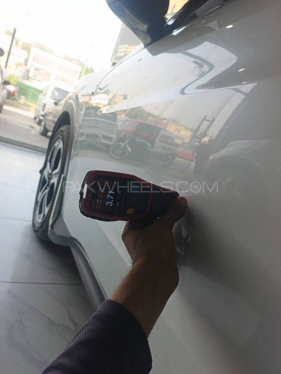 Inspector Comments: gari ka mukhtalif hisson per rust hai. engine shield missing hai.right B.pillar par dant ha.rims par scratch ha.gari par dast ha.food bood par paper Laga Howa ha. left front tyre par crack ha.or date n/a.Report is updated after informing the customer by technician.