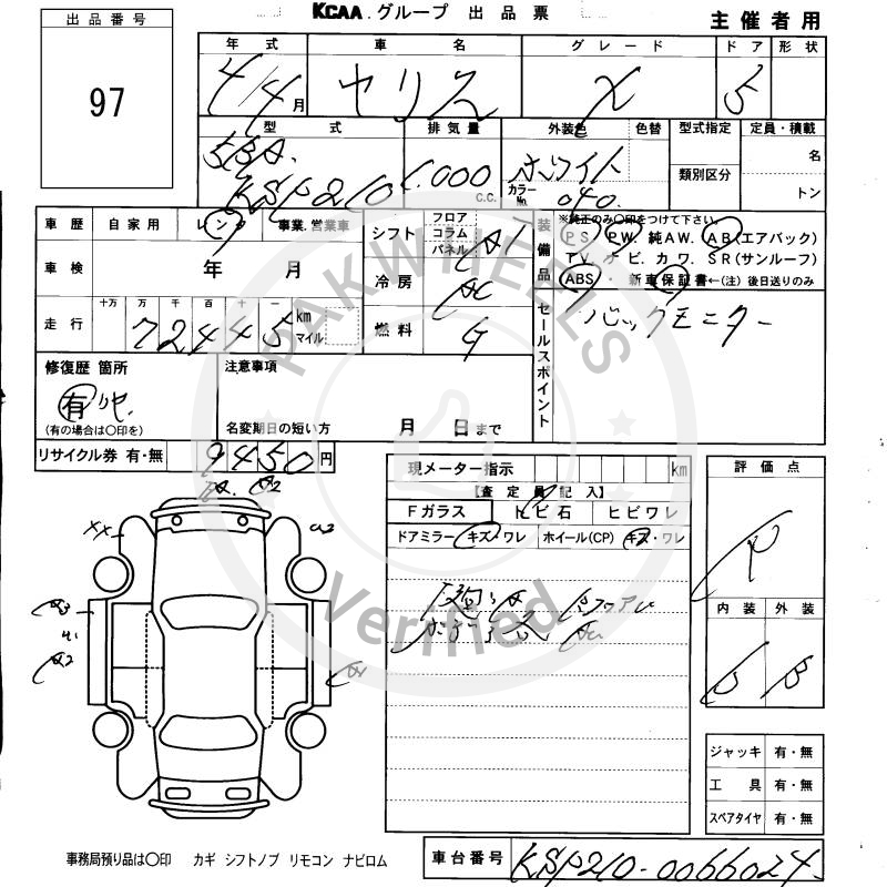 Chassis No KSP210-0066024 |