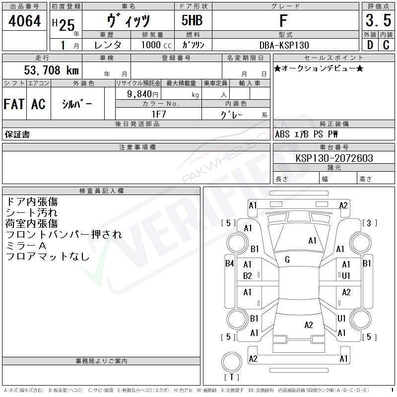 Chassis No KSP130-2072603 |