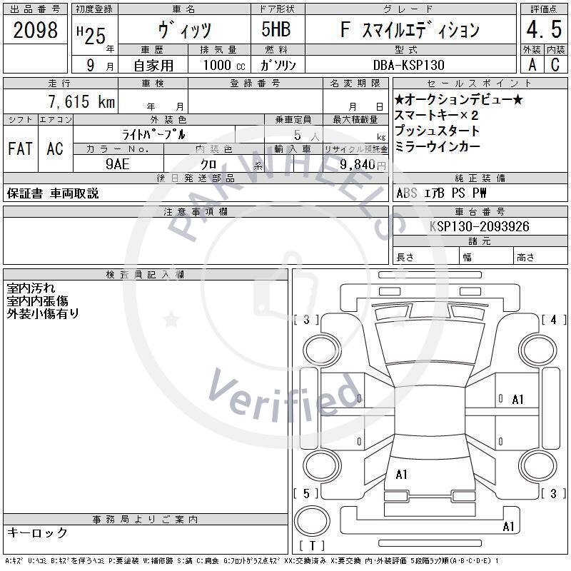 Chassis No KSP130-2093926 |