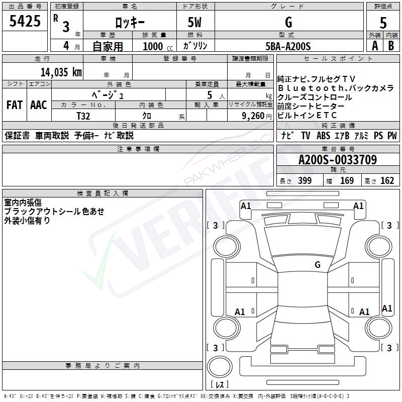 Chassis No A200S-0033709 |