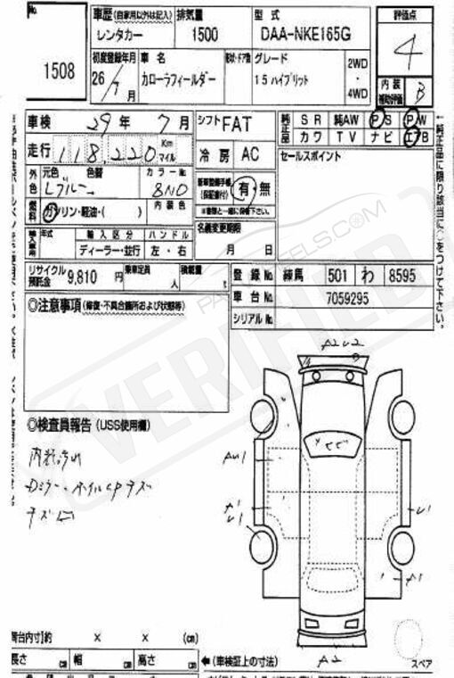 | Transmission Automatic | Chassis No NKE165-7059295 |