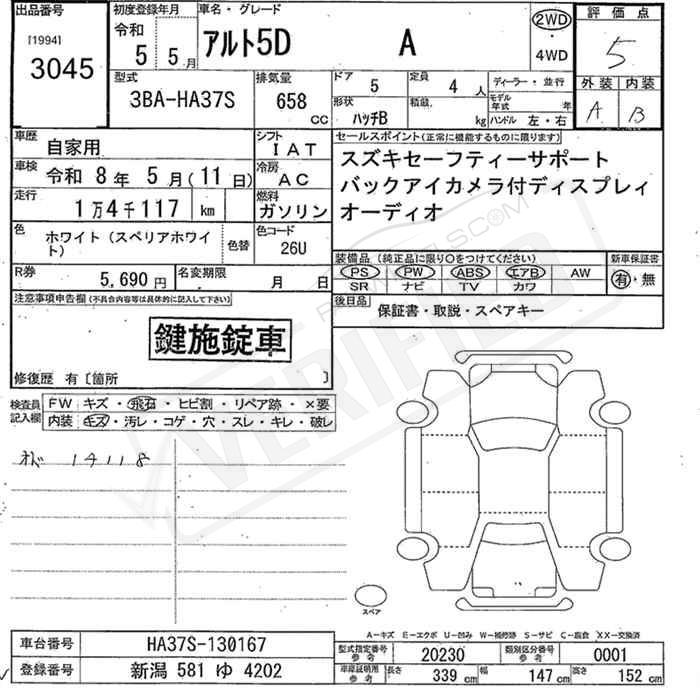 Chassis No HA37S-130167 |