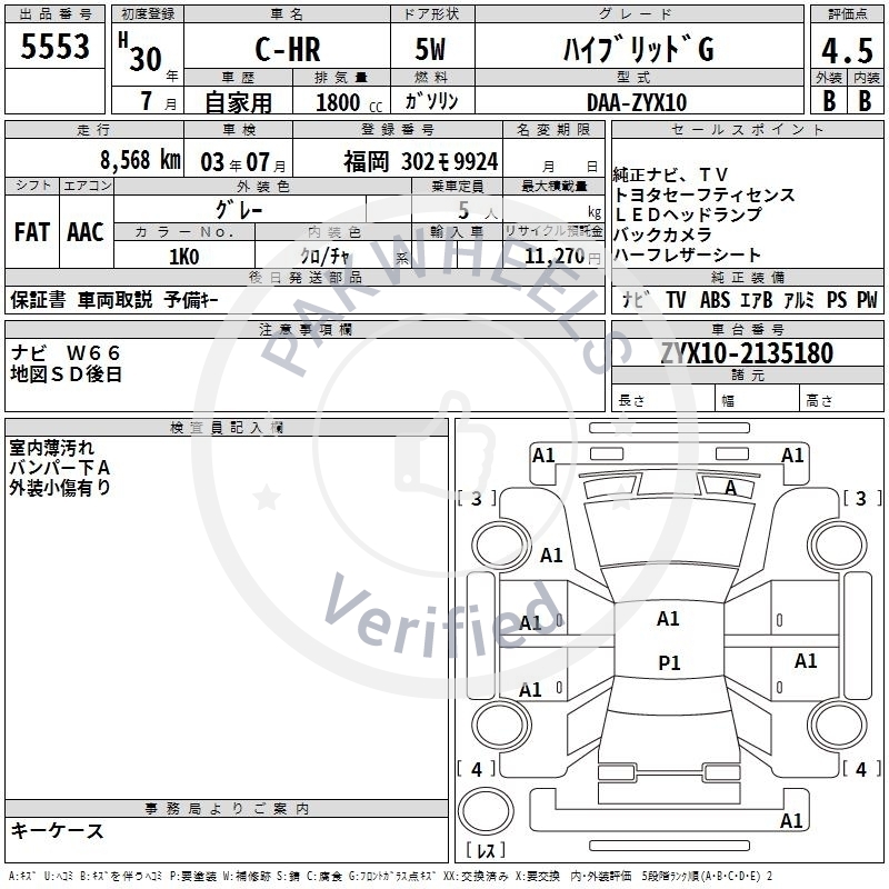 Chassis No ZYX10-2135180 |